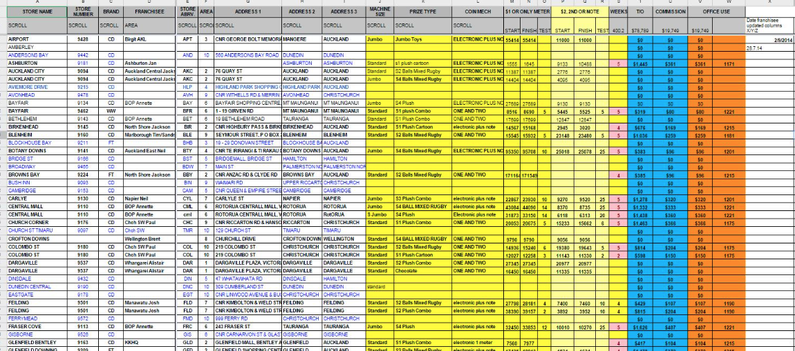 Each month by the 10th of the month at the latest, go to this doc and fill out your start and end and test readings from the start of week 1 to end of week 5 - so we get total turnover for the month.